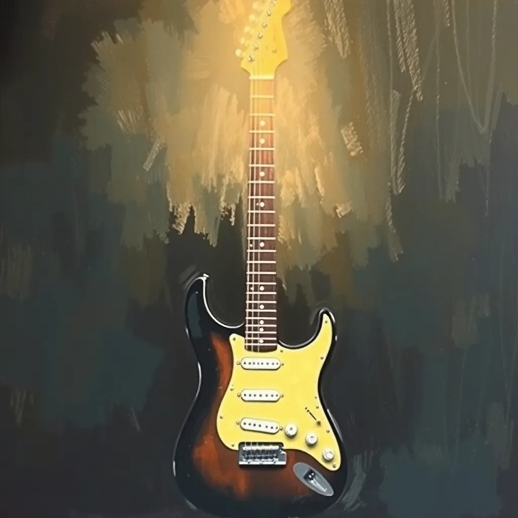 1990s Russian rock song, recorded live in a dry room, no digital effects; male baritone vocal, spoken-sung, dry close-mic, slight vocal fry, zero autotune; clean Fender-style electric guitar, tight rhythmic arpeggios in E minor, staccato offbeats; me... |