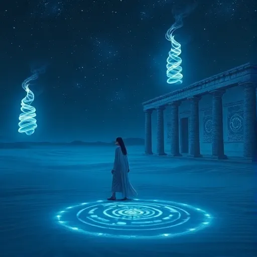 Psychedelic jazz fusion, glitch electronics, Arabic scales, ritualistic drums, 90-110 BPM