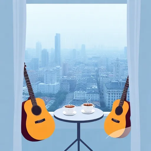 Folk acoustic, gentle seaside ambiance, seagull-inspired melodies
